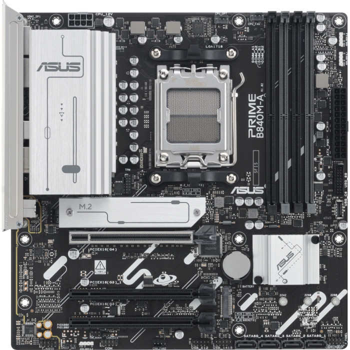 Материнська плата ASUS PRIME B840M-A-CSM – це витвір сучасних технологій, що відкриває нові горизонти для вашого комп'ютера. Завдяки підтримці процесорів серії AMD Ryzen™ 9000, ця плата поєднує в собі високу продуктивність, надійність та функціональні можливості, що визначають новий еталон в комп'ютерній індустрії.