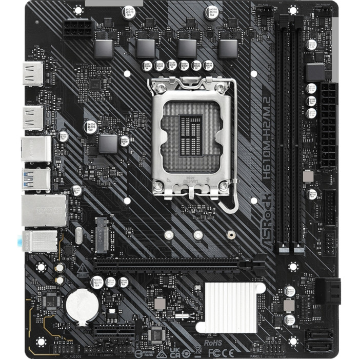Материнська плата ASRock H610M-H2/M.2 представляє собою сучасне рішення для тих, хто прагне побудувати високо-продуктивну і надійно працюючу систему на базі новітніх процесорів Intel. Завдяки інтеграції з чіпсетом Intel H610, ця плата надає максимальну сумісність і відмінну продуктивність, що робить її відмінним вибором для широкого спектру задач — від повсякденної роботи до ресурсоємних додатків.