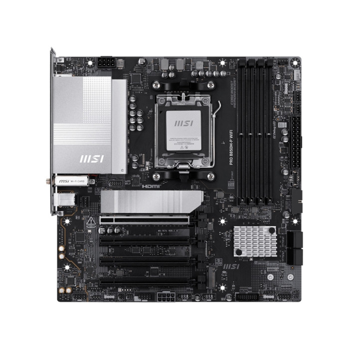 Материнська плата MSI PRO B850M-P WIFI — це справжній витвір передових комп'ютерних технологій, що поєднують у собі високу продуктивність та універсальність, задовольняючи потреби як геймерів, так і професіоналів, які займаються обробкою великих даних або створенням мультимедійного контенту. Побудована на базі чіпсета AMD B850 і сумісна з процесорами AMD Ryzen серій 9000, 8000 та 7000, ця плата відрізняється своєю компактністю завдяки форм-фактору Micro-ATX, що дозволяє встановлення навіть в обмеженому просторі без втрат функціональності.
