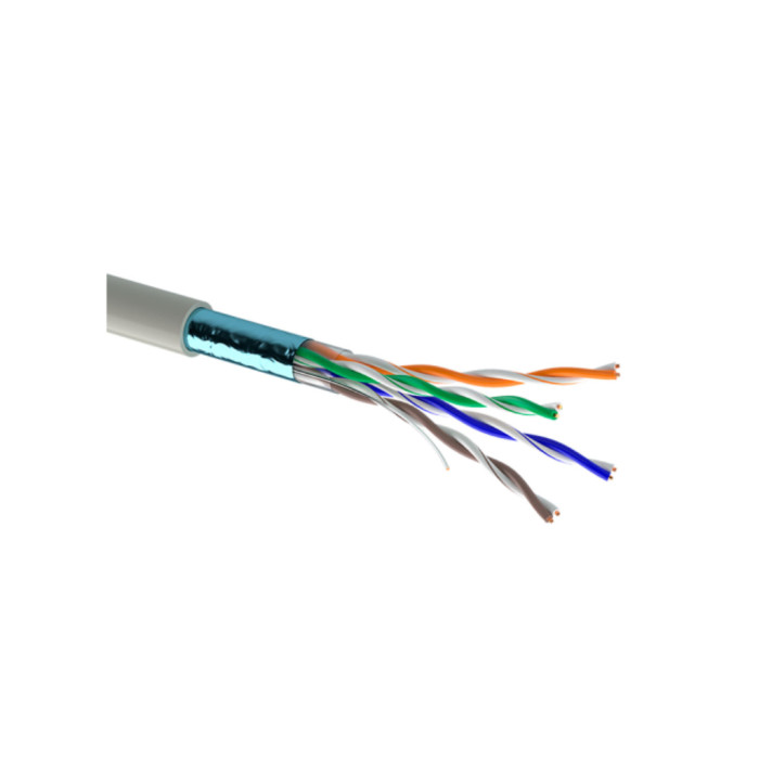 Кабель FTP (foiled twisted pair - вита пара із загальним екраном з фольги і мідним провідником для відведення наведених струмів), 4 пари, категорія 5e. Кабель призначений для стаціонарного прокладення усередині будівель, споруд і експлуатації в структурованих кабельних системах.