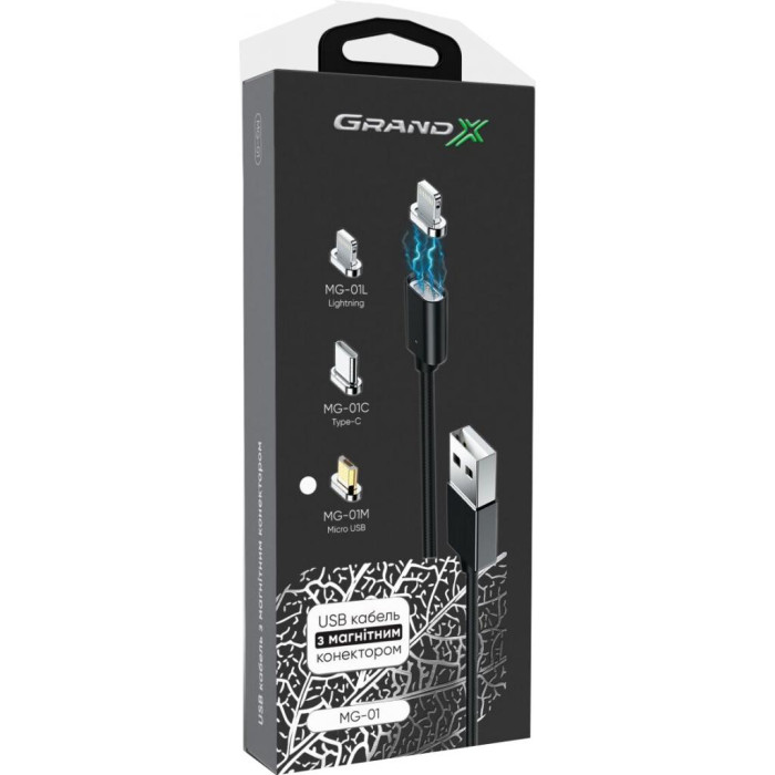 Дата кабель USB 2.0 AM to Micro 5P 1.0m Magnet Grand-X (MG-01M)