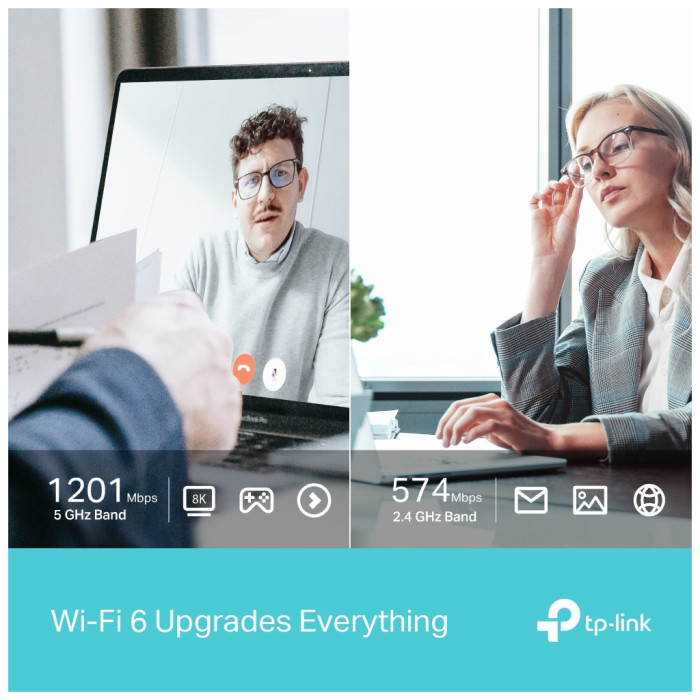 Швидкий Wi-Fi 6 - Подолайте гігабітний бар'єр із швидкістю до 1201 Мбіт/с (5 ГГц) + 574 Мбіт/с (2,4 ГГц). Два робочих діапазони - Діапазони 2,4 ГГц і 5 ГГц для гнучкого підключення. Ширше покриття - Підключайтеся до Wi-Fi з будь-якого місця у вашому домі за допомогою високопродуктивних антен і технології Beamforming. Ігровий процес з меншою затримкою - OFDMA та MU-MIMO забезпечують найефективніше WiFi-з'єднання для вашого ПК.. Покращена безпека - WPA3 забезпечує найновіші вдосконалення безпеки для захисту особистих паролів. Супершвидкий USB 3.0 - Швидкість передачі даних до 10 разів вища, ніж у USB 2.0,