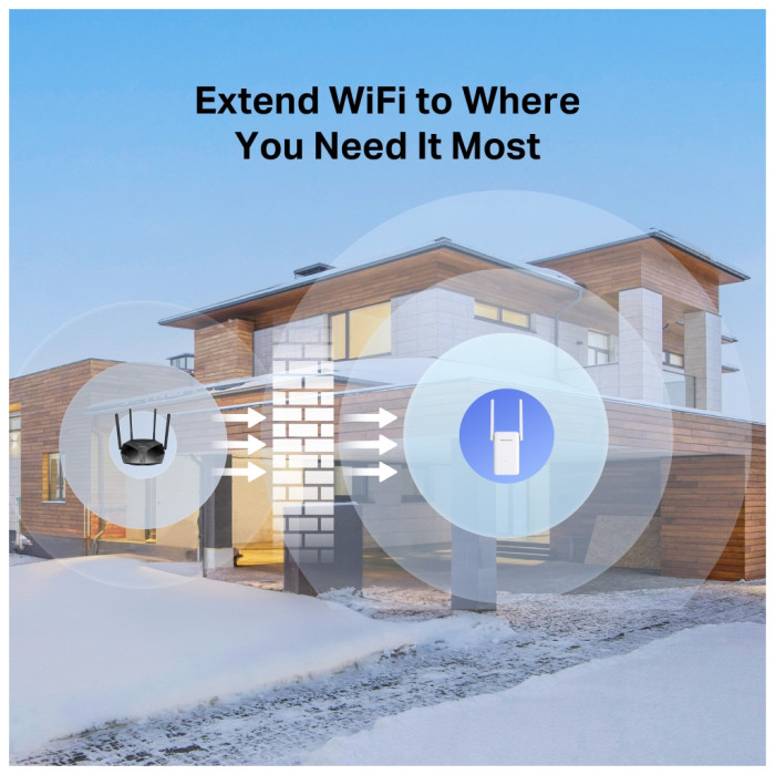 Розширте зону покриття маршрутизатора. Цей ретранслятор AX3000 з двома регульованими антенами з високим коефіцієнтом посилення посилює Wi-Fi у важкодоступних місцях і сумісний зі старими стандартами WiFi (11b/g/n/a/ac) і всіма підключеними пристроями.