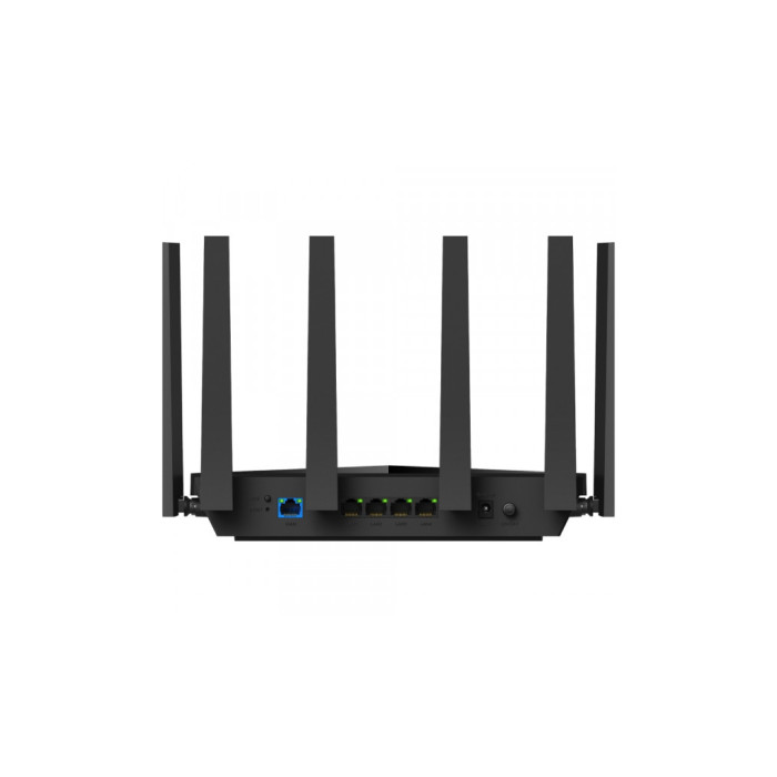 Шість фіксованих Wi-Fi антен у поєднанні з чотирма потужними FEM-модулями (Front-End Modules) та технологією Beamforming формують сильніші та більш сфокусовані сигнали Wi-Fi для бездоганного покриття. Чотири гігабітних LAN порти та один 2,5G WAN порт дають змогу здійснювати дротове підключення до мережі вашого ПК, ТБ, ігрових консолей, NAS та інших пристроїв.