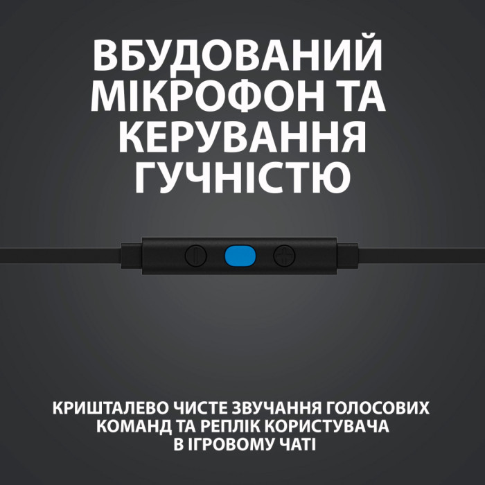 Інтегрований мікрофон на кабелі забезпечує високу якість голосового зв'язку, дозволяючи чітко передавати команди і брати участь у чаті. Навушники оснащені зручними елементами управління, що дозволяють легко регулювати гучність або зупиняти відтворення. Ви також можете відповідати на дзвінки, не перериваючи захоплюючий ігровий процес.