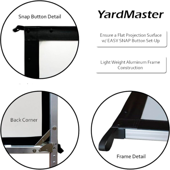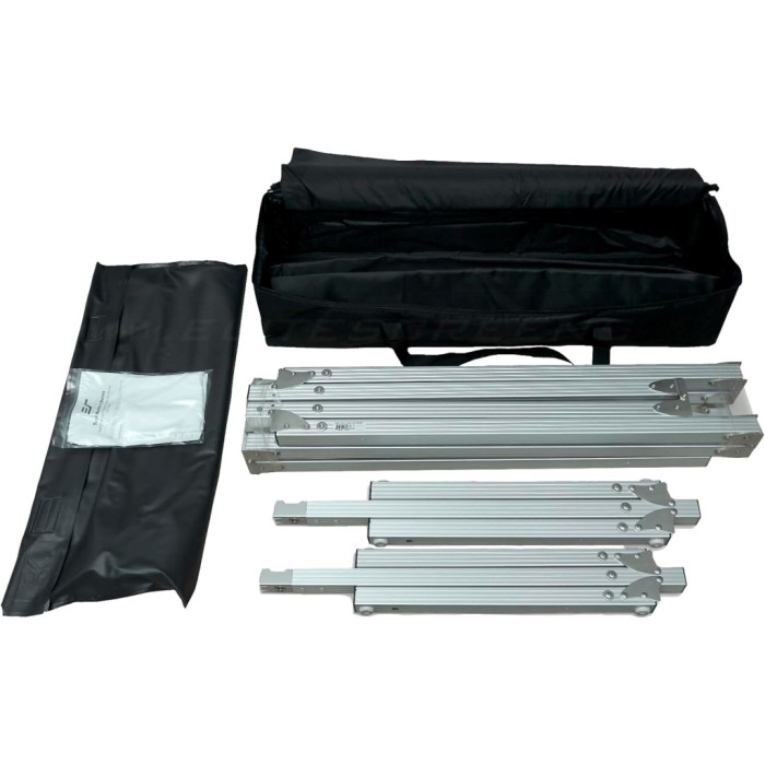 Екран забезпечений вініловим полотном CineWhite, що гарантує гарний натяг для ідеально гладкої "картинки". Полотно підходить для інсталяцій в умовах контрольованого та розсіяного освітлення, для відео 4K/HDR та активного 3D. У комплект входять кілочки та мотузки для надання додаткової стійкості екрана під час використання його у вуличних умовах. Проте конструкція екрана не передбачає його застосування при сильному вітрі. Для зручного транспортування є спеціальна сумка, яка вміщує всі комплектуючі.