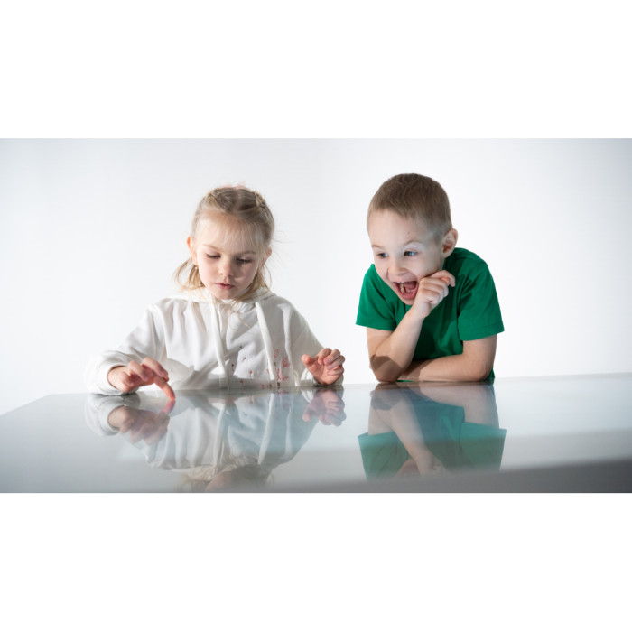 43-дюймовий сенсорний IPS-екран з яскравою Full HD роздільною здатністю (1920×1080) запрошує до спільної роботи. Завдяки підтримці до 10 одночасних дотиків, парта стає ідеальним майданчиком для групової активності. У школі кілька учнів можуть одночасно вирішувати інтерактивні завдання з математики або малювати спільний проєкт з образотворчого мистецтва. У бізнес-середовищі на нараді команда може спільно редагувати документи, креслити схеми чи проводити “мозковий штурм”, а у дитячому розважальному центрі діти можуть грати в розвивальні ігри разом.