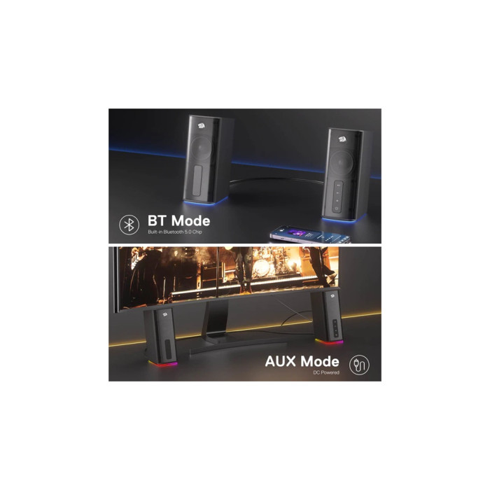 Акустична система Redragon Connie GS814 RGB Bluetooth Black (71987) - це досконале поєднання функціональності, стильного дизайну та найвищої якості звуку. Ця полична акустична система, що підходить для комп'ютера, надає нове значення вашим ігровим та мультимедійним враженням завдяки потужності у 20 Вт та відмінному стереозвуку.