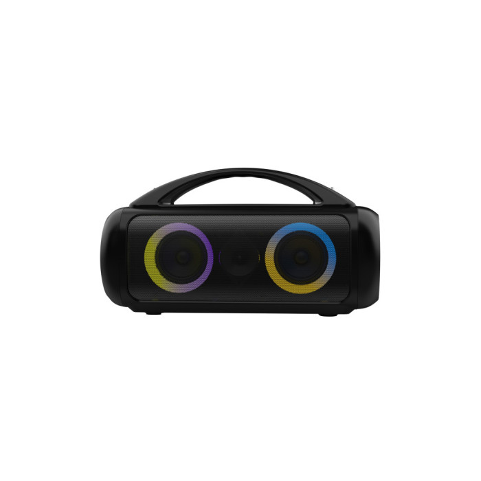 Конструкція акустичної системи з міцного пластику та уітальна його сторона — мобільність. А вага всього 3 кг у поєднанні зі зручною ручкою роблять транспортування легким і комфортним, що перетворює цю колонку на ідеального супутника для пікніків, пляжного відпочинку чи дружніх вечірок просто неба.