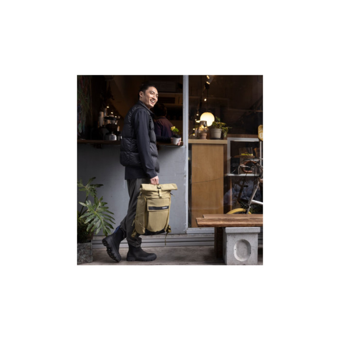 Одного дня ви їдете на велосипеді, іншого - на поїзді. Цей рюкзак допоможе вам освоїти місто завдяки широкому спектру зручних функцій. Коли ви в дорозі, легко дістаньте речі з основного відділення через верхнє або бічні отвори або помістіть куртку або велосипедний замок у розширювані передні кишені shove-it. Кришка rolltop, що закривається, дає змогу збільшити об'єм пакування і захистити ваші речі від зовнішніх впливів. У темний час доби велосипедний ліхтар і світловідбиваючі елементи зроблять вас помітними.