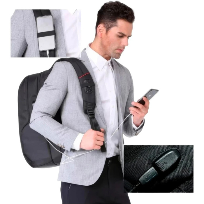 Рюкзак для ноутбука Tavialo 15.6" Smart TB20-1 black, 20л, 46х31х19см (TB20-124BL)