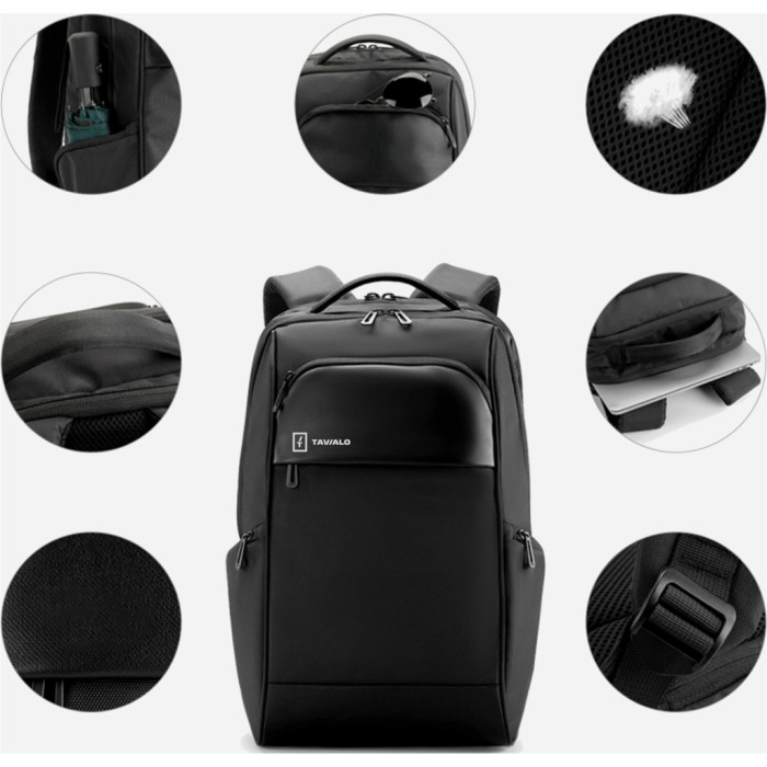 Виконаний зі зносостійкої синтетичної тканини, яка не пропускає вологу. Ручка і декоративний елемент виконані з синтетичної шкіри Microfiber. Склад рюкзака такий: зовнішня частина - 98% перероблений поліестер (виготовлений із перероблених PET-пляшок), 2% синтетична шкіра «Microfiber», внутрішня частина - 100% поліестер.Колір: чорний.Унісекс (підходить для носіння і чоловікам, і жінкам).Наплічні ремені ущільнені - для комфортного носіння. Довжину ременів можна регулювати.Спинка - ортопедична, із сіткою «Stay-Cool» для максимального комфорту використання рюкзака.Об'єм рюкзака - 23 л.Відповідає стандартам ручної поклажі асоціації IATA (International Air Transport Association) і дозволений для перевезення в салоні літака.У рюкзаку є: 1 велике відділення з подвійною блискавкою. Відділення на блискавці для ноутбука 15,6". Дві зовнішні бічні кишені на блискавці (для парасольки або пляшечки). 2 внутрішні кишені для дрібних речей, смартфона або гаманця. 2 зовнішні кишені на блискавці.Габарити: 290х180х440 мм.Габарити в упаковці: 290х70х440 мм.Вага: 0,57 кг.