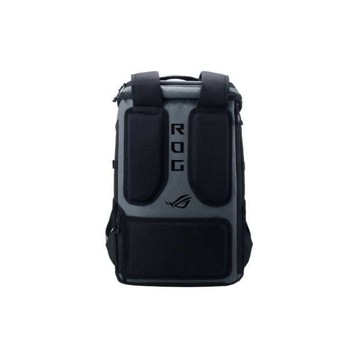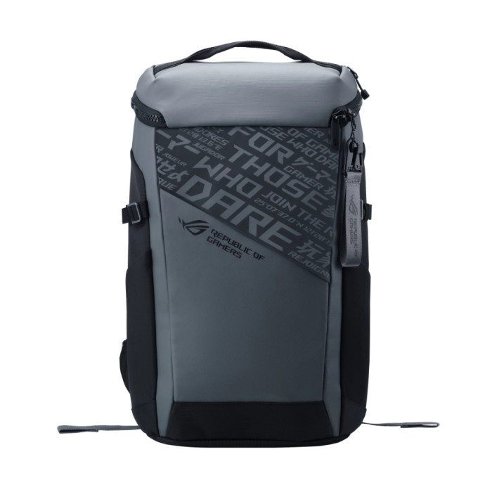 Модель отримала впізнаваний дизайн Cybertext Edition: сміливі лінії, логотип ROG і світловідбивну поверхню, яка виглядає ефектно та підвищує помітність у темний час доби. Рюкзак виготовлений із водовідштовхувальних і стійких до подряпин матеріалів (штучна шкіра та поліуретан), а водовідштовхувальні блискавки додатково захищають вміст від негоди.