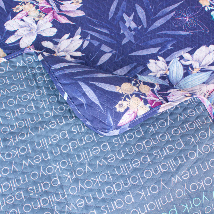 стьобане, Розміри виробу, см - 150 х 210 см, Склад матеріалу - 100% поліестер, наволочки: 50х70 см - 1 шт, двобічні, з наволочками, прати при температурі 40 °С, прасувати при температурі до 110 °С, віджим на низьких обертах або злив води, не відбілювати та не застосовувати засоби хімічного чищення, Колір - синій
