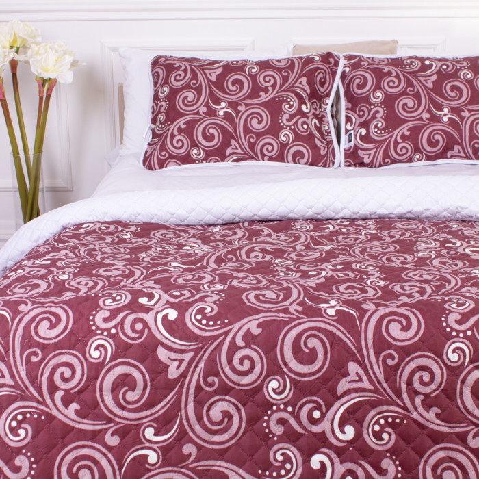стьобане, Розміри виробу, см - 220 x 240 см, Сезон - всесезон, Склад матеріалу - 100% поліестер, наволочки: 50х70 см - 2 шт., двобічні, з наволочками, віджим на низьких обертах або злив води, не відбілювати та не застосовувати засоби хімічного чищення, прати за температури 40°С, прасувати за температури до 110°С, Колір - вишневий