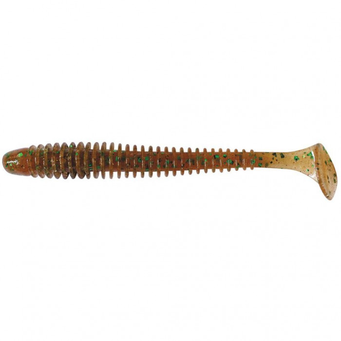 П'ята виброхвоста дуже рухлива і включається в гру при самій повільній проводці. Ребристість на тілі приманки створює додаткові збурення у водному середовищі, що привертають хижака з великої відстані.