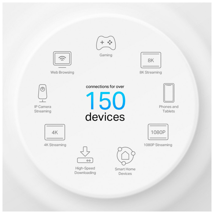Пристрої Deco призначені для розвантаження мереж із високою щільністю клієнтів. До Deco X50-PoE можна підключити понад 150 гаджетів без зниження продуктивності.